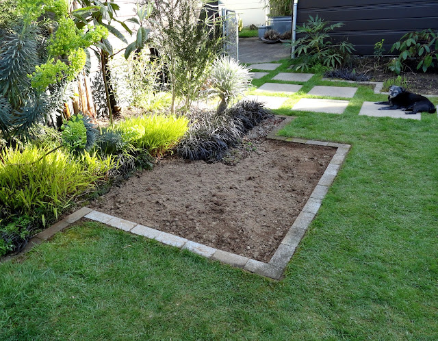 Blooming at the back of this image is Grevillea ‘Poorinda Leane’ which was transplanted from elsewhere in the garden. In front if it is Eryngium alpinum, an over wintered but tender Echium candicans 'Star of Madeira' and in the front a Grevillea victoriae also moved here from elsewhere (and yes there will be some plant shuffling in the future when these babies get bigger).
